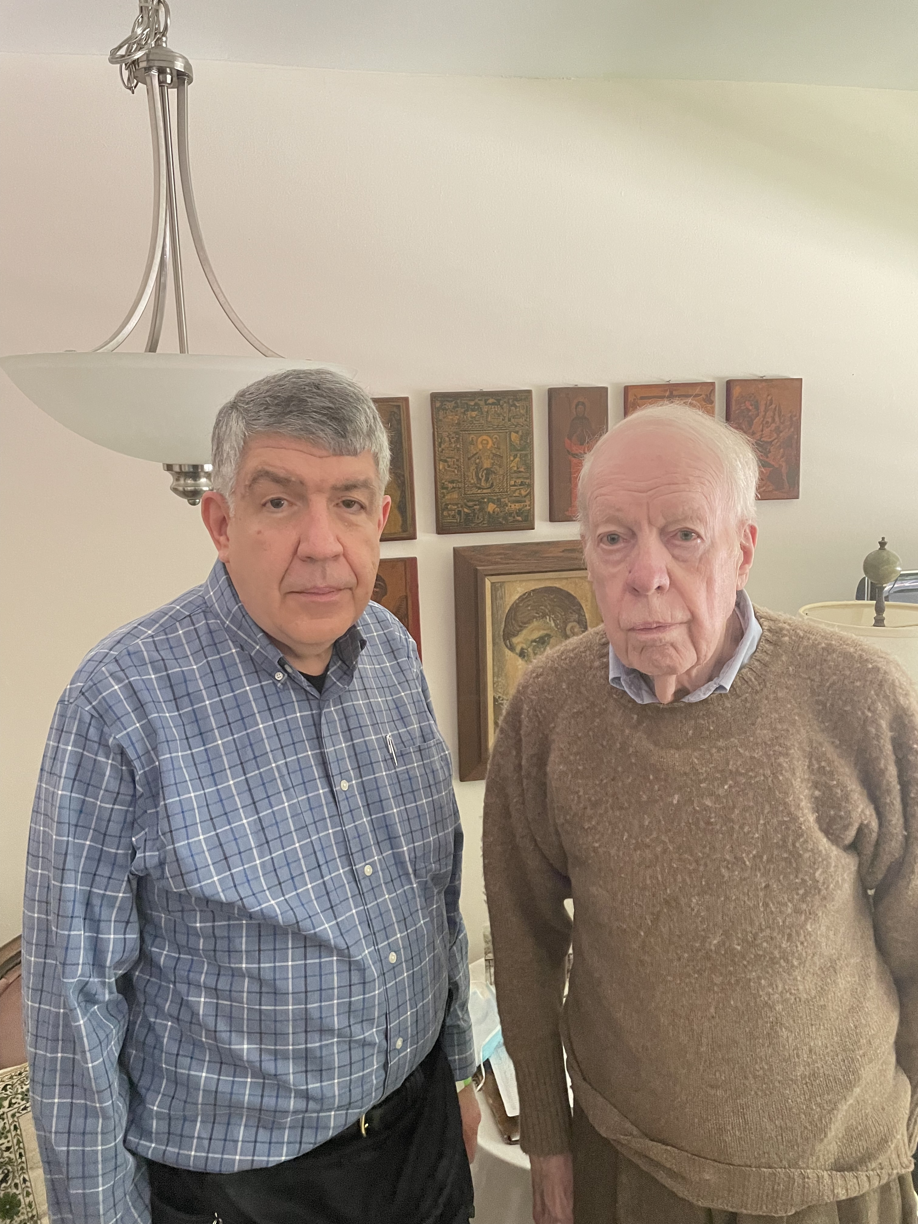 Returning to the United States upon the birth of their first child and settling in Queens, Liam freelanced as a translator, taught a couple of years at Columbia University, and pursued a doctorate there ( The Humor of Stevan Sremac ). The arrival of a second son had made a steadier income even more of a necessity by then—the purchase of a diesel Mercedes-Benz sedan in 1967 which the unmechanical Liam had serviced at dealers used to Packard owners hadn’t helped the household finances any despite fuel prices as low as 19¢/gallon back then—the family moved in 1970 after he started with the Foreign Broadcast Information Service, an open-source intelligence component of the Central Intelligence Agency in a building in Arlington, Virginia. There, he translated openly available news and information from media sources in multiple languages for 20 years before retiring. His name appears in Wikipedia for the translation of the novel Bašta, pepeo by Danilo Kiš (which was published as Garden, Ashes in 1975 by Harcourt Brace Jovanovich and again in 2003 by Dalkey Archive Press ). Liam rarely showed a creative side (he left his trombone at his parents’ house and could never hold a camera steady) but découpage he did of Orthodox icons applied to wood planks hung along one wall of his home. Whatever hopes he might have had for his children thwarted by their merely passable academic achievements attending in-state colleges and also their largely downmarket tastes, Liam decided to travel more, he and Svetlana visited other parts of the United States and various countries in Europe repeatedly in pursuit of art, architecture, music, and culture. He also volunteered at the Corcoran Gallery of Art in Washington, D.C. and while he was unhandy around the house he did cut the grass using a reel mower well into his eighties. His shopping at Trader Joe’s was a good fit for that grocery’s founder’s quip that the store was “for overeducated and underpaid people” as Liam philosophically avoided all investment.
