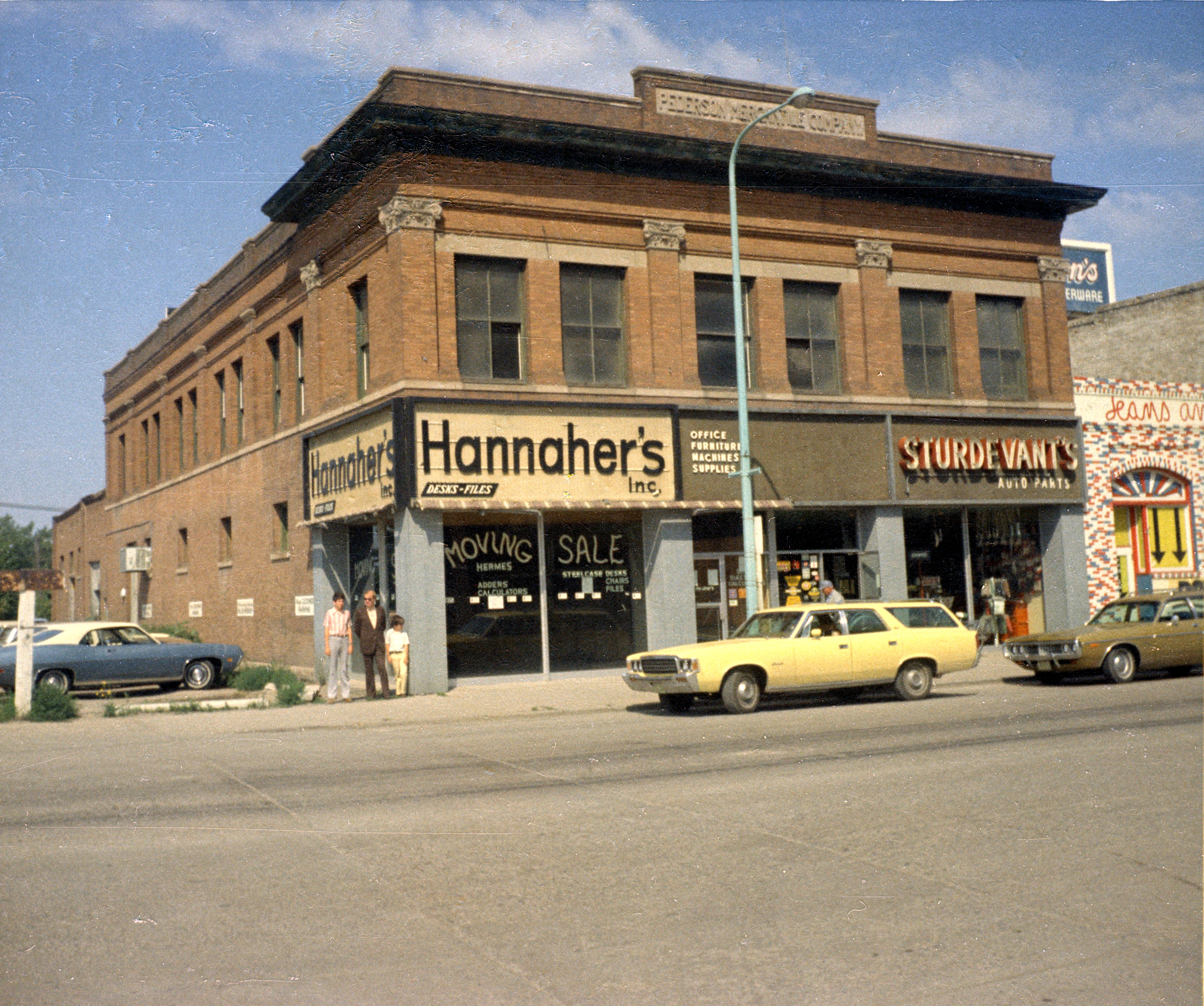 A grandmother, Ellen Hannaher, dies at 83. The front page of the evening edition The Fargo Forum and Daily Republican reports her death just after midnight after a heart attack while at home at 1101 Fifth Street N, she’d been resident in the community for 57 years. The two-story, single-family home at the corner with 11th Avenue N had been built in 1910 and had been (and would be) home to members of the Hannaher, Hellander, Nagle, and Shulstad families.