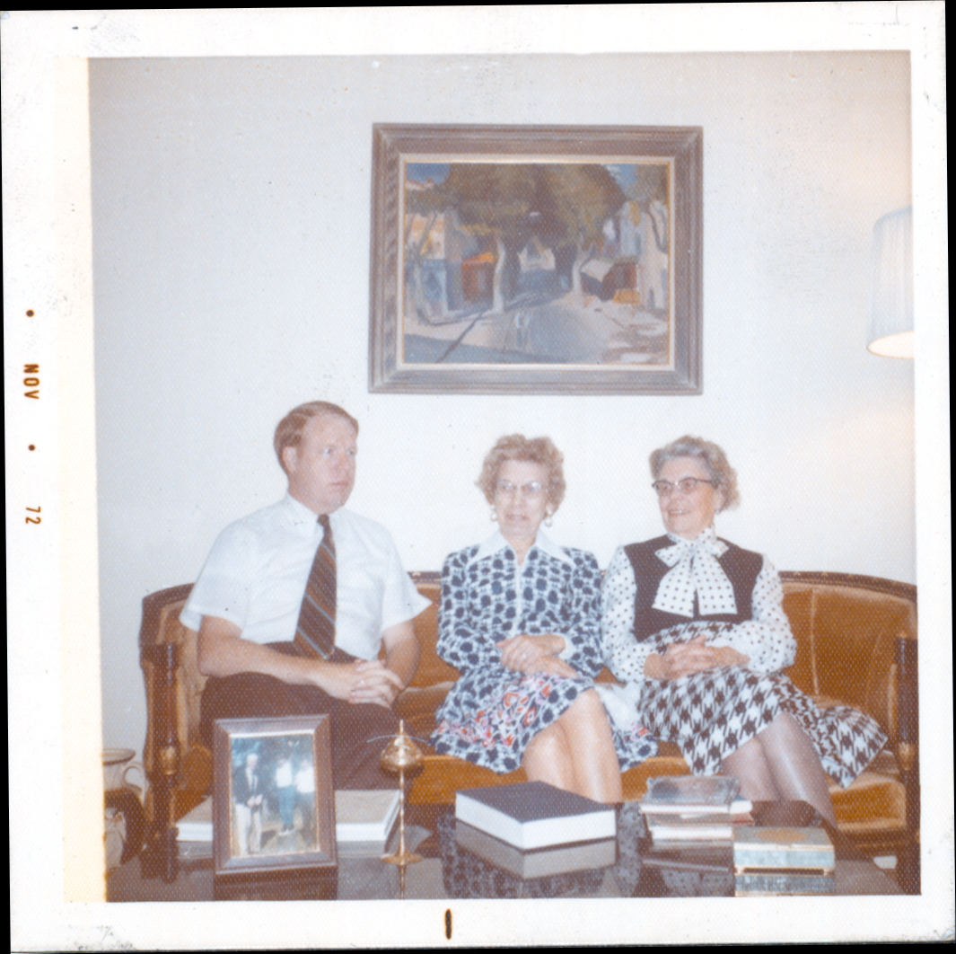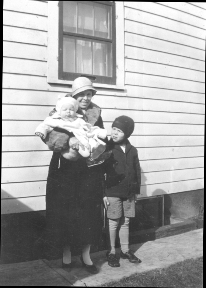 The notation in pen is “T.O; Tresa / Granma / Bill” to which an adult Liam has added “ca. 1937” also in pen. Martha Bell (Alsworth) Hill stands as if she’s using her cane, but no mobility aid is visible.