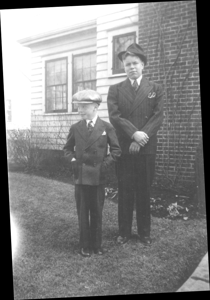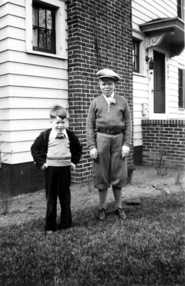 Thos. P. Hannaher 14 yrs / Wm. J. (ditto) 8 yrs 4/16/1939 (a week after Easter). Hats in the front yard.