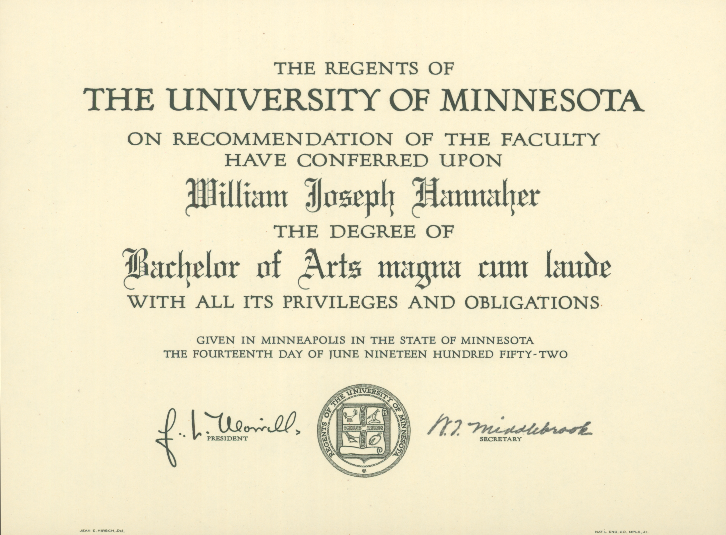 William Joseph Hannaher is born to Marguerite Amanda Hill Hannaher and Thomas O’Connor Hannaher in Cass County, North Dakota. The signature of A. A. Whittemore, M.D. appears on the Notification of Birth Registration, he was Special Agent, Bureau of the Census, Department of Commerce, for the state. [source: certificate]