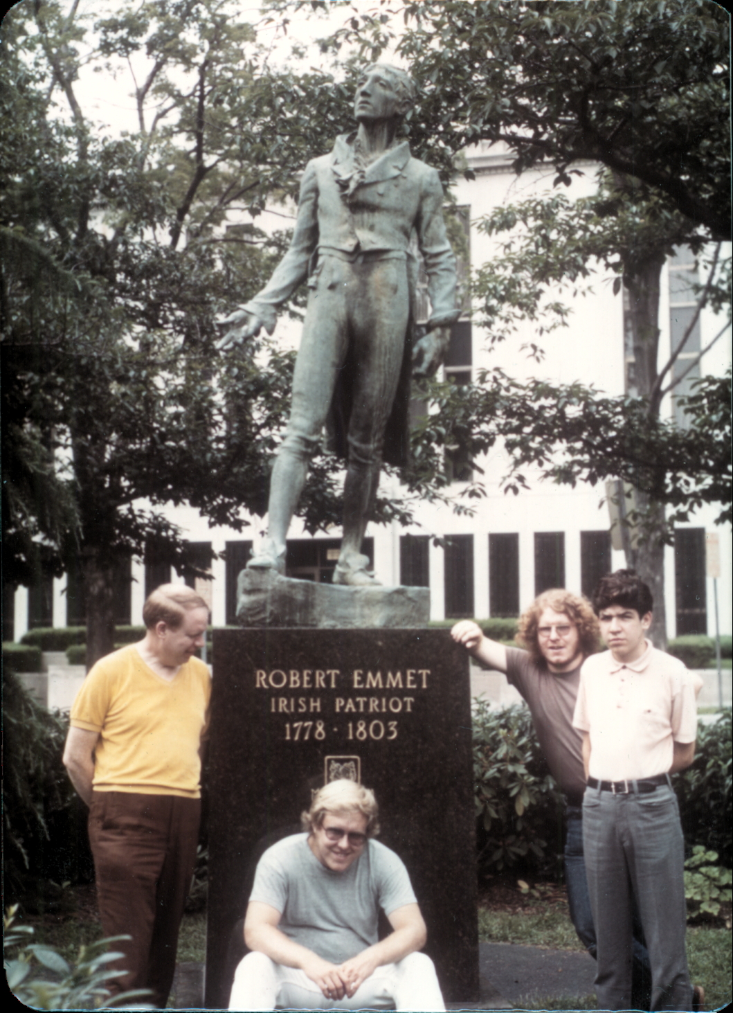 Constantine delivers the Fine Art Facsimile Edition of The Book of Kells (paid for in 1987 and published in 1990) to the Minnesota State University Moorhead, Livingston Lord Library. Collection Development Librarian Larry Schwartz offers no receipt.